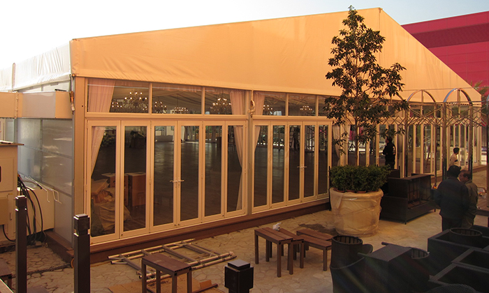 我司嚴(yán)格執(zhí)行ISO9001的質(zhì)量管理體系,確保不良產(chǎn)品的最小化及客戶滿意度的最大化。我們的的主要產(chǎn)品包括可移動(dòng)的模塊化鋁合金支架篷房,有不同風(fēng)格的篷房及裝飾可供選擇,篷房跨度從3米到60米。此外,還包括錐頂篷房和吊頂篷房,以及篷房配件,如照明燈具、地板、空調(diào)、桌椅及其它用于篷房內(nèi)部的家具。篷房可廣泛應(yīng)用于大小型活動(dòng)、婚慶、展會(huì)、體育、酒店、航空和工業(yè)等其它領(lǐng)域。篷房框架結(jié)構(gòu)為高強(qiáng)度鋁合金6061/T6型材,篷布為防水、阻燃的雙面PVC涂層聚酯纖維布,主體結(jié)構(gòu)風(fēng)載荷不少于100Km/h。