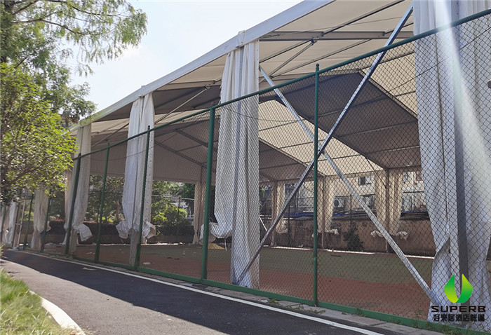 籃球場篷房同其他篷房產(chǎn)品一樣,跨度自由,范圍可以從3-60米不等,長度可以按3米或 5米的倍數(shù)無限延伸,高度及配件、篷布顏色等也均可定制,以設(shè)計(jì)出客戶的專屬篷房產(chǎn)品?;@球場篷房框架采用優(yōu)質(zhì)鋁合金,篷布采用雙面涂層PVC篷布,二者結(jié)合能夠有效保障其結(jié)構(gòu)穩(wěn)固、防水防霉且阻燃,能夠有效保障在內(nèi)部運(yùn)動(dòng)的人員安全問題。