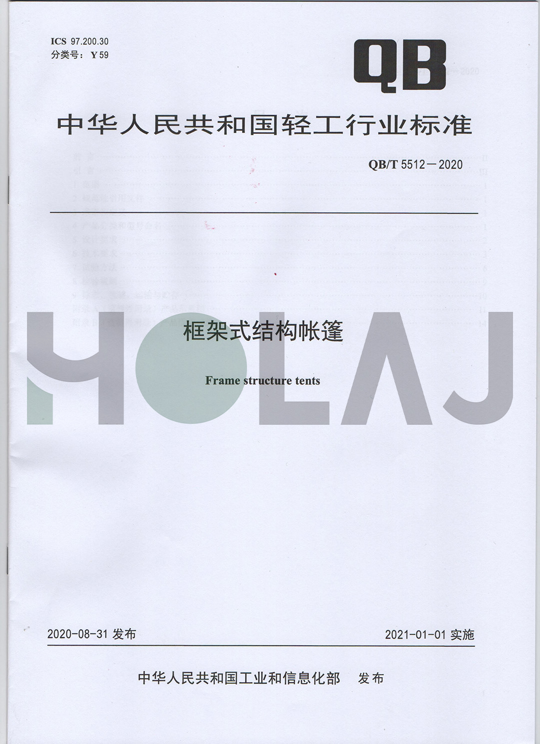 行業(yè)專家表示,QB/T 5512-2020《框架式結(jié)構(gòu)帳篷》國家標準的正式發(fā)行,將對框架式結(jié)構(gòu)帳篷的術(shù)語和定義、產(chǎn)品分類和型號命名、設(shè)計要求、技術(shù)要求、試驗方法、檢驗規(guī)則及標志、包裝、運輸、貯存、研制和使用等各方面都具有積極意義,為行業(yè)技術(shù)進步和發(fā)展提供了重要保障。