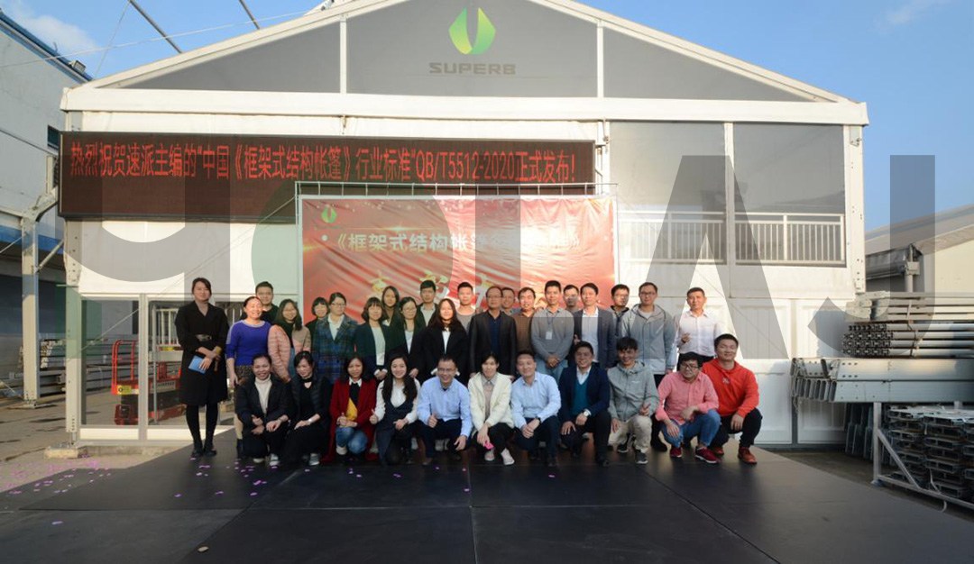 速派憑借在篷房領(lǐng)域卓越的研發(fā)創(chuàng)新實力,組織公司專家參加框架式結(jié)構(gòu)篷房的標準編寫工作,并最終完成《框架式結(jié)構(gòu)帳篷標準》的編寫、審批。