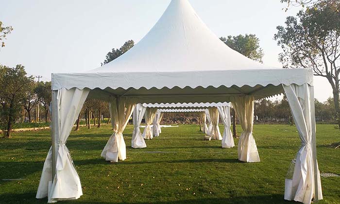 我司嚴(yán)格執(zhí)行ISO9001的質(zhì)量管理體系,確保不良產(chǎn)品的最小化及客戶(hù)滿(mǎn)意度的最大化。我們的的主要產(chǎn)品包括可移動(dòng)的模塊化鋁合金支架篷房,有不同風(fēng)格的篷房及裝飾可供選擇,篷房跨度從3米到60米。此外,還包括錐頂篷房和吊頂篷房,以及篷房配件,如照明燈具、地板、空調(diào)、桌椅及其它用于篷房?jī)?nèi)部的家具。篷房可廣泛應(yīng)用于大小型活動(dòng)、婚慶、展會(huì)、體育、酒店、航空和工業(yè)等其它領(lǐng)域。篷房框架結(jié)構(gòu)為高強(qiáng)度鋁合金6061/T6型材,篷布為防水、阻燃的雙面PVC涂層聚酯纖維布,主體結(jié)構(gòu)風(fēng)載荷不少于100Km/h。