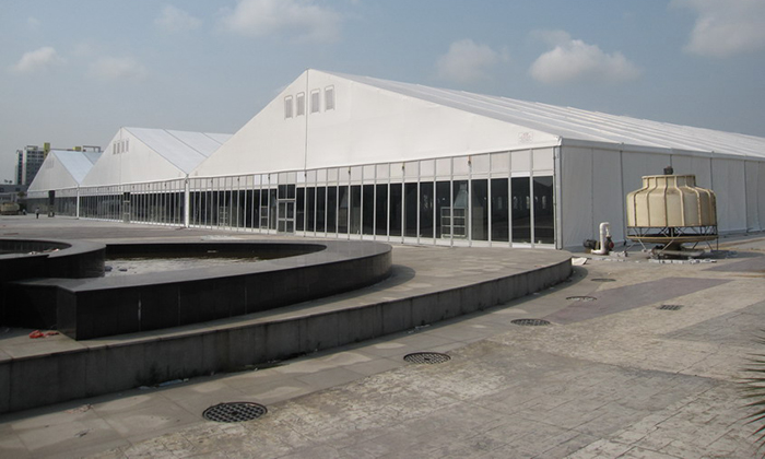 大型展館篷房,可以根據(jù)客戶需求將不同寬度的篷房跨度,從而達到理想的預設空間。