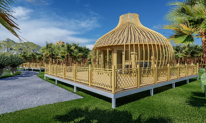 設(shè)計理念源于“鳥籠”結(jié)構(gòu)整齊大氣的布局令人歸隱山林,敞開心扉,歸隱山林,具有開放式的玲瓏造型,賦予了它獨(dú)特的真實感和具有震撼力的形體,外觀即為建筑的結(jié)構(gòu),立面與結(jié)構(gòu)達(dá)到了高度的統(tǒng)一。室內(nèi)設(shè)有臥室和洗漱間,